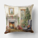 Christmas Fireplace Window Tree Blue Cushion