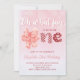 First birthday with a Christmas holiday theme. Features big gift bow, and red and pink colours. Personalise the editable text for you big day.