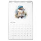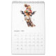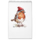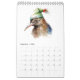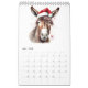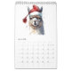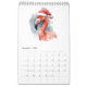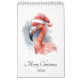 Calendar with on the cover a watercolor painting of a pink flamingo wearing a pink winter christmas hat in christmas style. Each month has a different animal in watercolor.