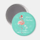 Stylish design with a retro touch featuring a festive pink flamingo wearing a red Santa hat, stars and palm trees decorated with baubles set against an aqua background. Magnet with a customisable design for you to personalise with your own text, images and ideas. An original digital art image created by Quirky Chic.