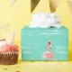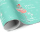 Stylish design with a retro touch featuring festive pink flamingos wearing red Santa hats, stars and palm trees decorated with baubles set against an aqua background . A customisable design for you to personalise with your own text, images and ideas. An original digital art image created by Quirky Chic.