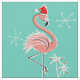 Stylish design with a retro touch featuring festive pink flamingos wearing red Santa hats, stars and palm trees decorated with baubles set against an aqua background . A customisable design for you to personalise with your own text, images and ideas. An original digital art image created by Quirky Chic.