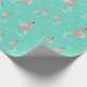 Stylish design with a retro touch featuring festive pink flamingos wearing red Santa hats, stars and palm trees decorated with baubles set against an aqua background . A customisable design for you to personalise with your own text, images and ideas. An original digital art image created by QuirkyChic.
