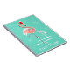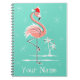 Stylish design with a retro touch featuring a festive pink flamingo wearing a red Santa hat, stars and palm trees decorated with baubles set against an aqua background. A customisable design for you to personalise with your own text, images and ideas. An original digital art image created by Quirky Chic.