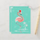 Stylish design with a retro touch featuring a festive pink flamingo wearing a red Santa hat, stars and palm trees decorated with baubles set against an aqua background. A customisable design for you to personalise with your own text, images and ideas. An original digital art image created by Quirky Chic.