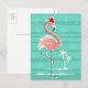 Christmas Flamingo Stripe postcard