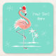 Stylish design with a retro touch featuring a festive pink flamingo wearing a red Santa hat, stars and palm trees decorated with baubles set against an aqua background. A customisable design for you to personalise with your own text, images and ideas. An original digital art image created by Quirky Chic.