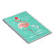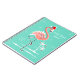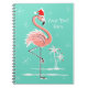 Stylish design with a retro touch featuring a festive pink flamingo wearing a red Santa hat, stars and palm trees decorated with baubles set against an aqua background. A customisable design for you to personalise with your own text, images and ideas. An original digital art image created by Quirky Chic.
