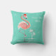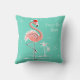 Stylish design with a retro touch featuring a festive pink flamingo wearing a red Santa hat, stars and palm trees decorated with baubles set against an aqua background. A customisable design for you to personalise with your own text, images and ideas. An original digital art image created by Quirky Chic.