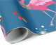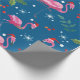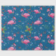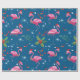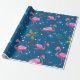 Elegant Christmas flamingos and holly pattern on a dark blue background, perfect for creating beautifully wrapped gifts.