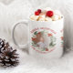 Christmas floral wreath three photo holiday Coffee Mug. Personalise with your own photos and text. All photos are of Photography © Storytree Studios, Stanford, CA