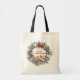 Christmas floral wreath with robin love birds tote bag
