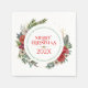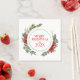 Colourful Christmas flowers wreath with Merry Christmas-typography in red. Customisable text will make this holiday napkin design uniquely yours.