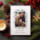 Beautiful personalised photo holiday design with christmas pines and berries illustrations.