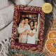 Christmas Folk Floral Photo Merlot Gold Foil Holiday Card