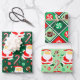 Creative football Christmas holiday gift wrap featuring Santa playing football, candy canes and red and green Christmas peppermint candy.