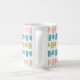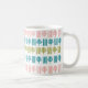 This mug has a mid-century modern Christmas design of four lines and a Christmas tree in pink, green, and turquoise repeating across the design. Like the design but want different colours? Message me.