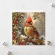 Christmas Forest with Holly Berry, Bird, Winter Holiday Card