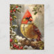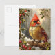 Christmas Forest with Holly Berry, Bird, Winter Holiday Postcard