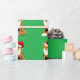 This gorgeous wrapping paper features a fox sitting almost like a dog and wearing a Santa hat on his head. This fun image is on a green background and is a very unique idea for Christmas gift wrap.