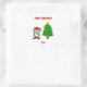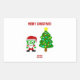 Here you can admire one of Christmas drawings, I call, "Christmas FrankenCheese," FrankenCheese dressed up as Santa, with a decorated Christmas tree, text says, "Merry Christmas." You can now order, "Christmas FrankenCheese," on this rectangle sticker to wish someone a, Merry Christmas."