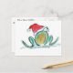 Christmas Frog sports a Santa Hat at a jaunty angle while saying Ribbett - Ribbettt! [Merry Christmas] Sumi-e, Japanese style ink painting in colour. Artist Ellen Miffitt @ Nine Lives Studio
