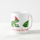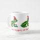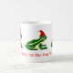 Enjoy your favorite holiday beverages in this festive Christmas mug featuring an adorable trio of frogs hoping (or is that hopping?) to join Santa's crew of elves. Caption on mug: Hippety Hoppety All The Way To Christmas!