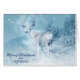Send a bit of Wyoming to your friends and family this Holiday Season, with this stunning photograph of a buck deer standing at the edge of a mountain forest with snowflakes drifting down around him. The text in blue at the bottom can be changed to anything you'd like, as can the text on the inside.