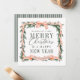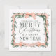 We wish you a very Merry Christmas & a Happy New Year, Green typography. Watercolor Christmas Garland and Ribbon Frame, green stripe pattern backing, Christmas Card.
