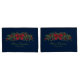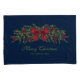 Destei's original illustration of a festive green fir tree garland that is decorated with a big red bow, red Christmas baubles and some faux lights. The background colour is dark blue. There are also two personalizable text areas.