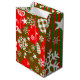 Wrap your holiday gifts with festive flair using this Christmas Gift Bag, featuring a vibrant red and green striped background, white snowflakes, ornaments, and the joyful phrase Joy to the World.