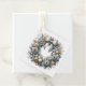 This gift tag is shown with a festive holiday wreath print in colors of silver and gold.