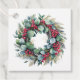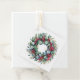 This gift tag is shown with a festive holiday red berry and eucalyptus wreath print.