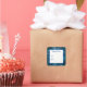 This Christmas gift tag sticker is shown with a festive holiday blue snowflakes print.