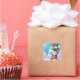 This Christmas gift tag sticker is shown with a festive holiday Santa print.