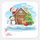 This Christmas gift tag sticker is shown with a festive holiday Santa and the gang print.