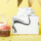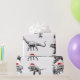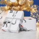 Perfect for wrapping Christmas gifts! Very unique, thick paper. Crisp white paper with black dinosaur images with red Santa hats.