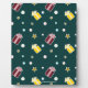 Bright and funky seamless Christmas pattern, colourful gifts, stars and snowflakes on green background.