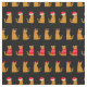 Christmas Ginger Cat Santa Hats Pattern on Black Fabric
