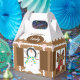Cute brown candy store with snowman on front, gingerbread boy baker on back, gingerbread girl and reindeer characters on either side. Candy sign on front flap with a custom name template. Rick rack icing and peppermint candies adorn outside. Perfect for candy or treat exchanges!