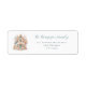 Christmas Gingerbread House Return Name Address. A festive bohemian style gingerbread home in shades of creams, pinks and winter blue is to the left with your return name and address to the right which you can easily personalise.