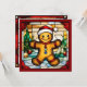 Christmas Gingerbread Man Faux Stained Glass Customisable Christmas Card