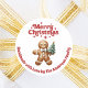 Perfect for homemade cookies, bakery goods. A white background, red text. Merry Christmas is written with a retro style font. Decorated with a gingerbread man holding a Christmas tree. Personalise and add your family