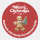 Perfect for homemade cookies, bakery goods. A red background, white text. Merry Christmas is written with a retro style font. Decorated with a gingerbread man holding a Christmas tree. Personalise and add your family
