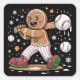 Christmas Gingerbread Man Sports Player Baseball Square Sticker