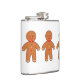 The flask itself is fine. It’s a cheap flask, obviously bought in bulk, however am prepared to overlook that. Given that it is a personalized item, I would have liked to have seen gift boxing instead of the generic packaging. Terrible printing, and/or quality. It’s a cheap, tacky vinyl. It is not cut straight and is also applied in a way that it is overhanging the bottom, causing the glue to catch on items and it will eventually roll and tear, damaging the wrap.