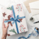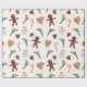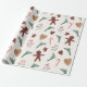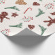Christmas festive wrapping paper with gingerbread, pine branch and candy