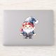 cute christmas themed gnome. he is wearing a blue hat with red rim. his outfit is also blue.