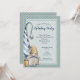 Cute thumbs-up bearded gnome and a Christmas tree on stripes of blue, tan and green with your holiday Christmas party details in chic lettering, perfect for your office holiday party invitations, Christmas party invitations and more. MATCHING items in our store.