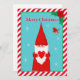 Christmas gnome & cute red bird Christmas Card. Text can be personalised.